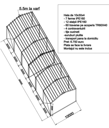 Structură metalică 10×20×4 – Hală prefabricată rezistentă